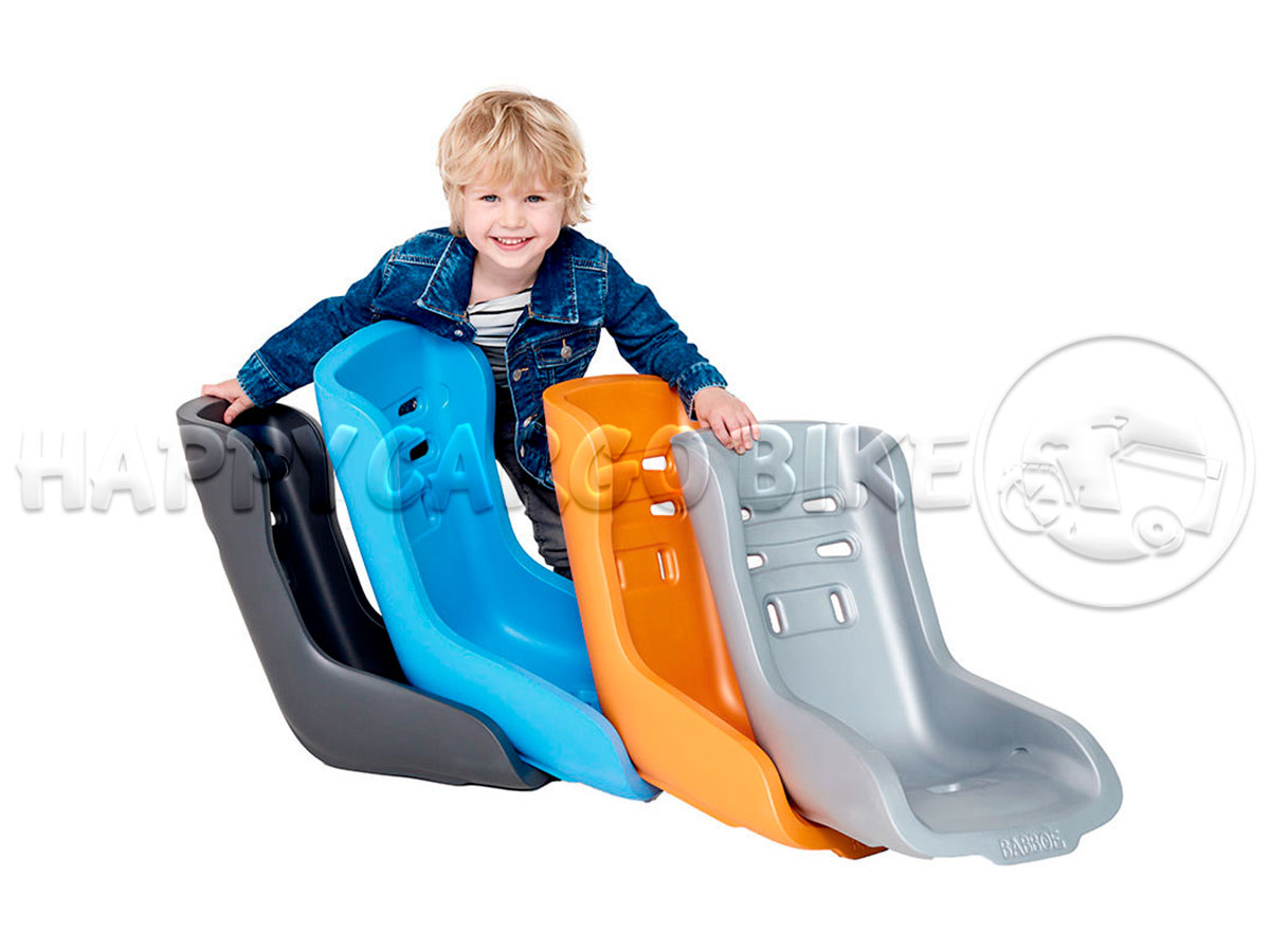 Babboe ha utilizado las ideas de los usuarios actuales de bicicletas de carga en el desarrollo de este asiento para niños pequeños. El material es absorbente de golpes, resistente al agua y tiene un efecto aislante.