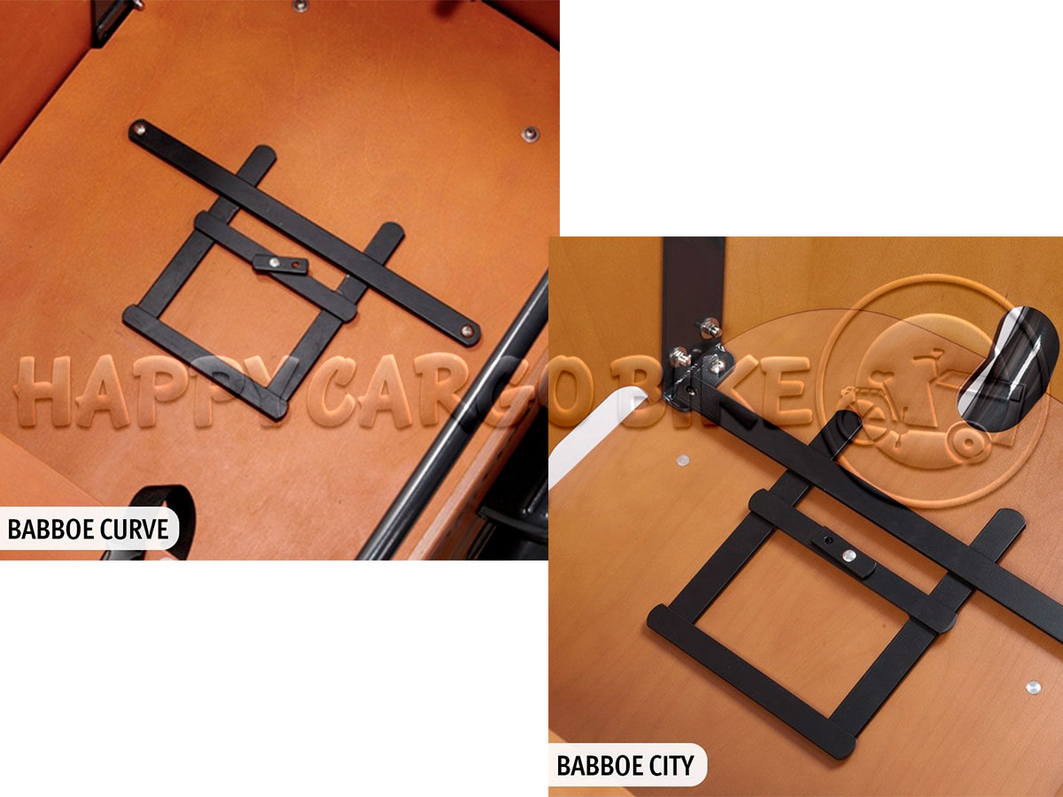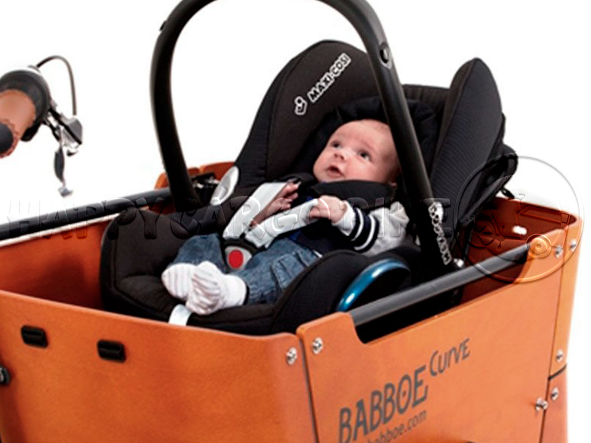 El portador Maxi-Cosi de Steco tiene una buena suspensión y es adecuado para casi todos los tipos de Maxi-Cosi. En el banco todavía hay espacio suficiente para dos niños pequeños (hasta 4 años). ¿Tienes una bicicleta de carga Babboe Mini? Luego debe quitar el banco para que el Maxi-Cosi se ajuste.