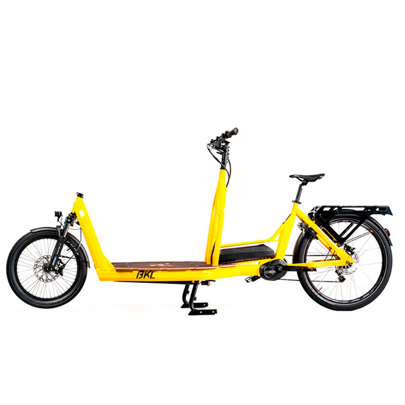 Te presentamos nuestro modelo de bicicleta de carga eléctrica BKL con plataforma de madera, capaz de alcanzar los 300 litros de volumen, para que se amolde a lo que tú quieras.