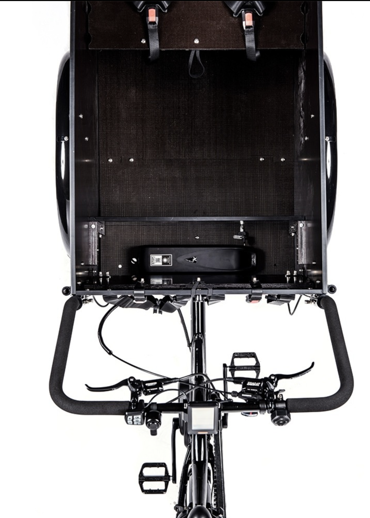 Frenos de disco hidráulicos delanteros y traseros. Iluminación con iluminación automática delantera y trasera. Potente motor central con una batería bloqueable completa de 80 Nm y 17,5 Ah de Samsung / LG que puede llevar y cargar en un tomacorriente estándar. Bancos y cinturón para 2 niños y práctica carga USB en el manillar con amortiguación de manillar. Engranaje de cubo de 8 velocidades, marco de aluminio y bloqueo del marco de serie. (ver más especificaciones a continuación)