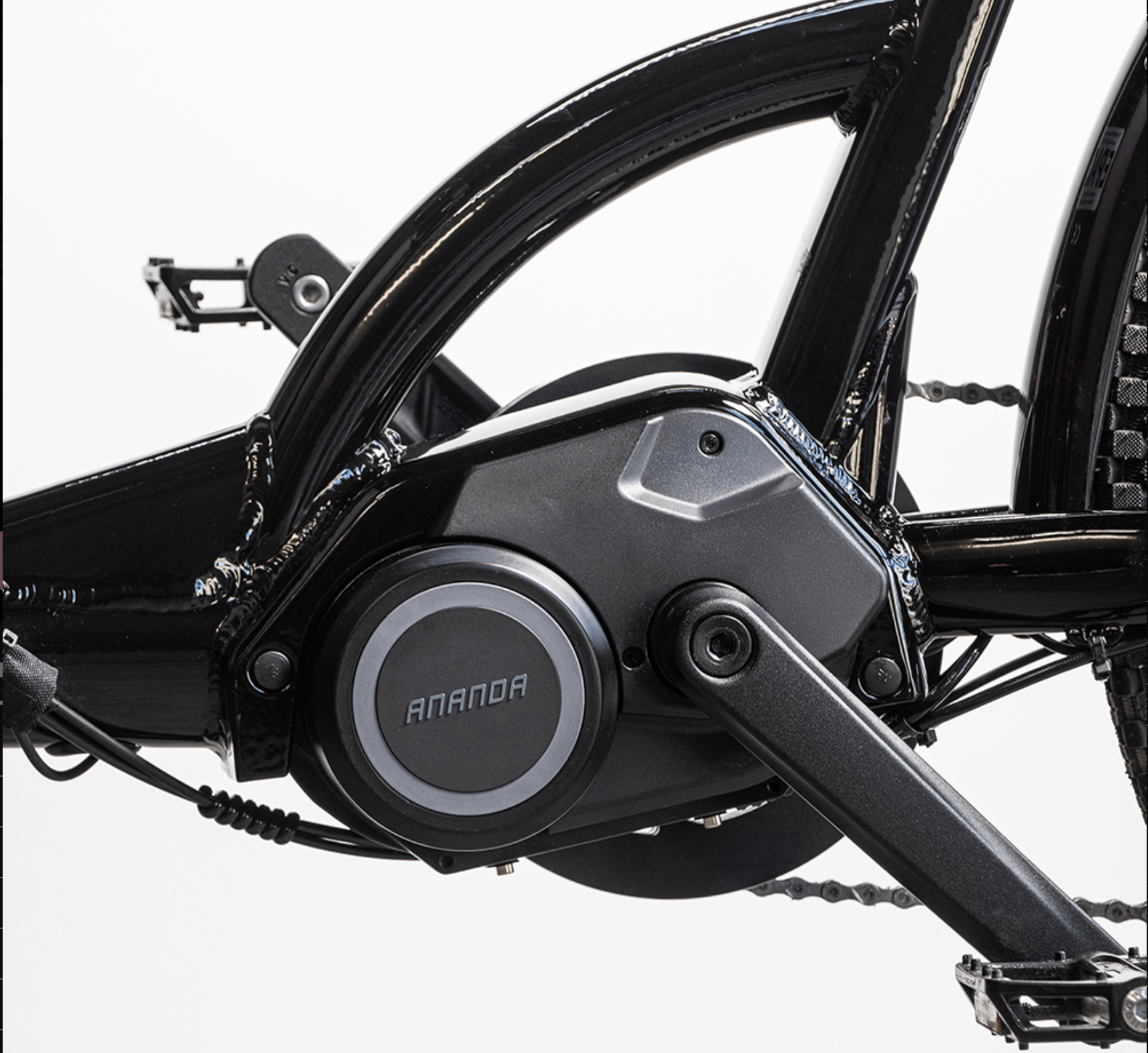 Motor auxiliar eléctrico de Bafang y equipado con banqueta. El asiento tiene dos cinturones de seguridad para que incluso los niños puedan viajar con seguridad en la bicicleta.