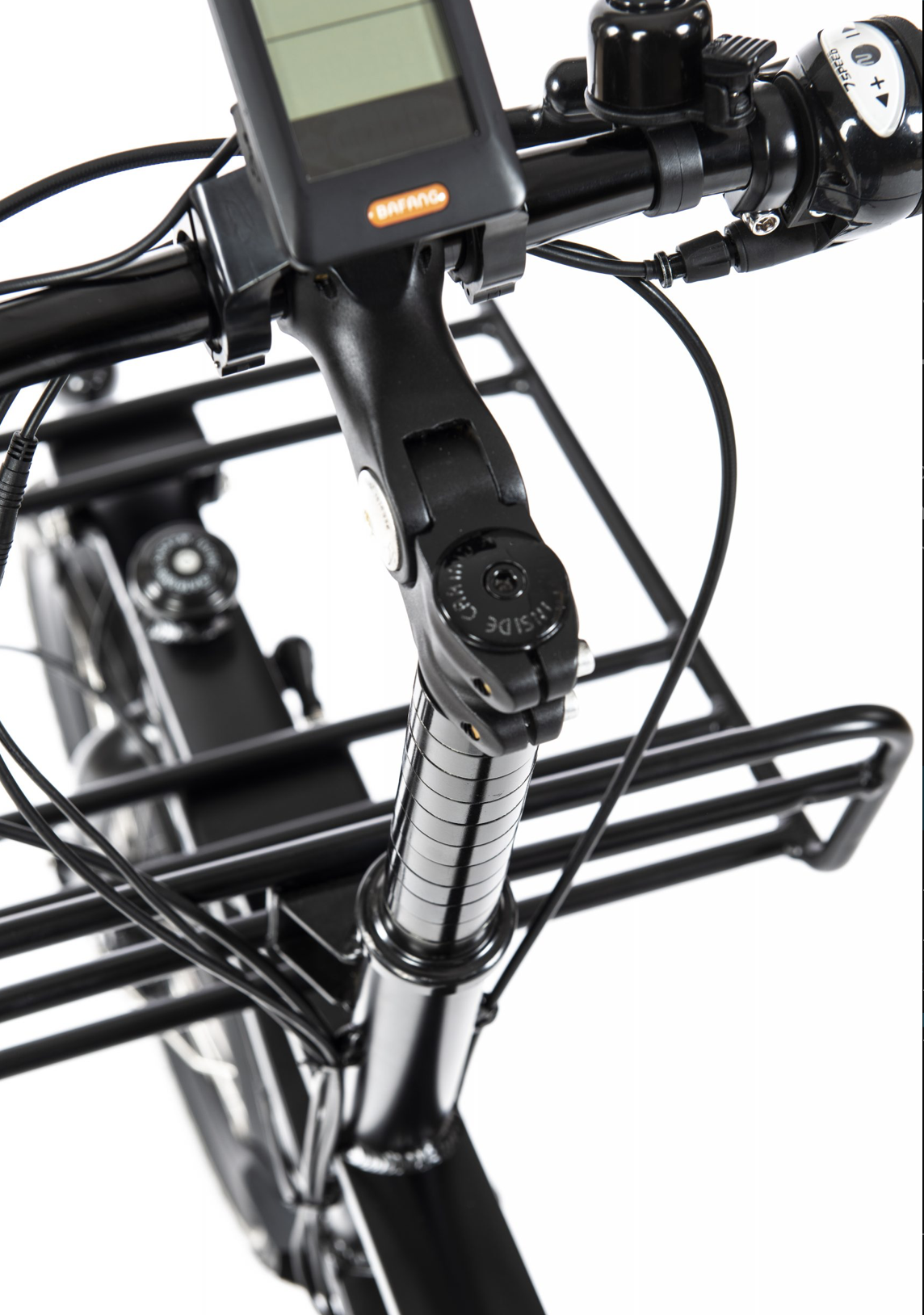 Esta bicicleta de transporte inteligente tiene un motor Bafang central de 250 W con 80 Nm y freno hidráulico en la parte delantera y freno de tambor en la parte trasera. Esto hace que esta bicicleta sea fuerte, rápida y segura.