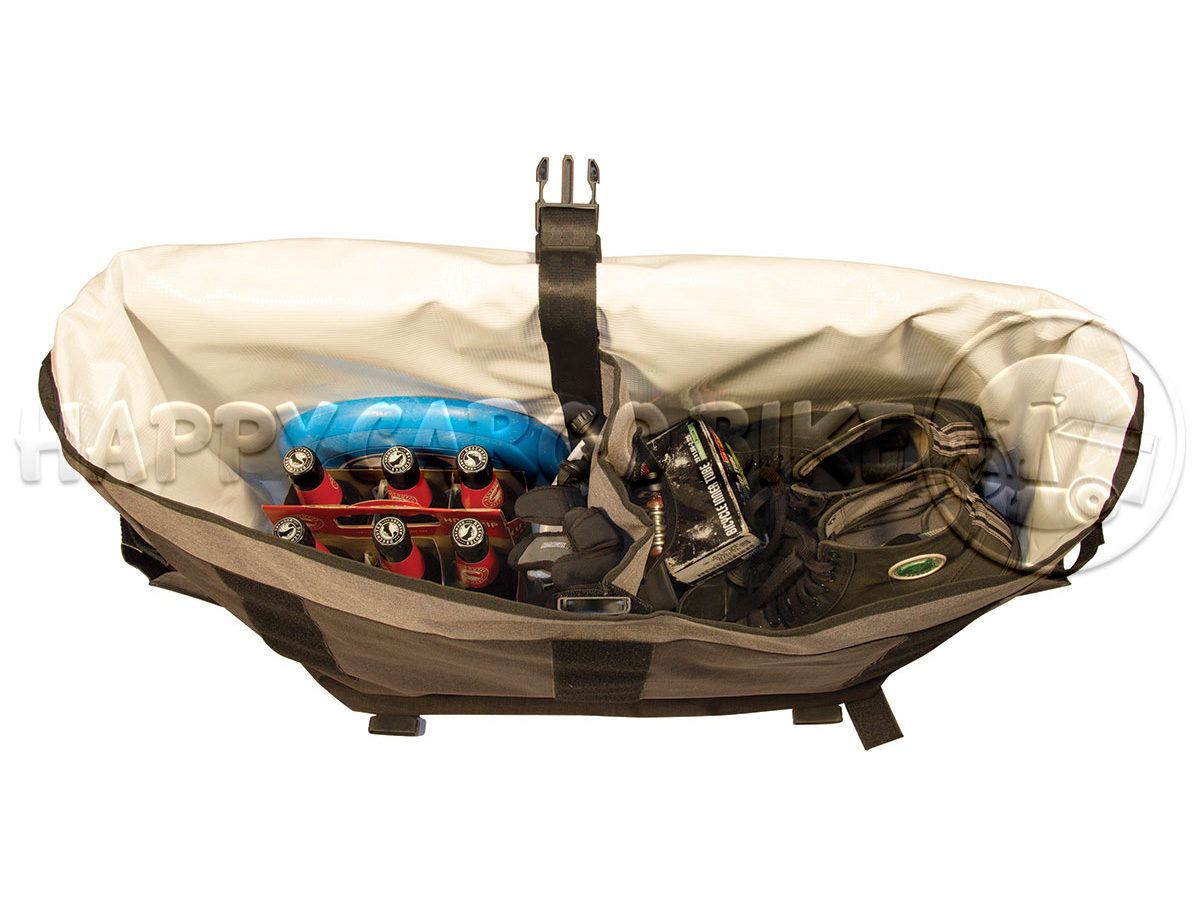 Con la capacidad de sostener dos bolsas de supermercado, la alforja Go-Getter bag puede transportar cualquier cosa. Mover mochilas, ropa de gimnasia, proyectos de ciencias y comestibles, todo al mismo tiempo. Con un práctico divisor de gancho y bucle.