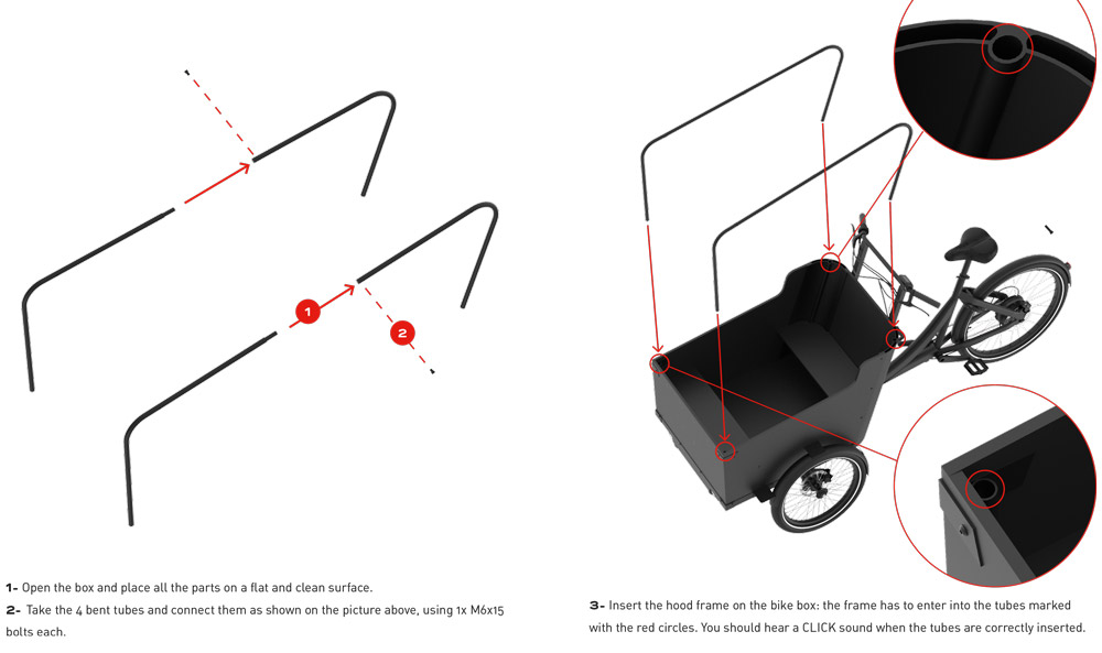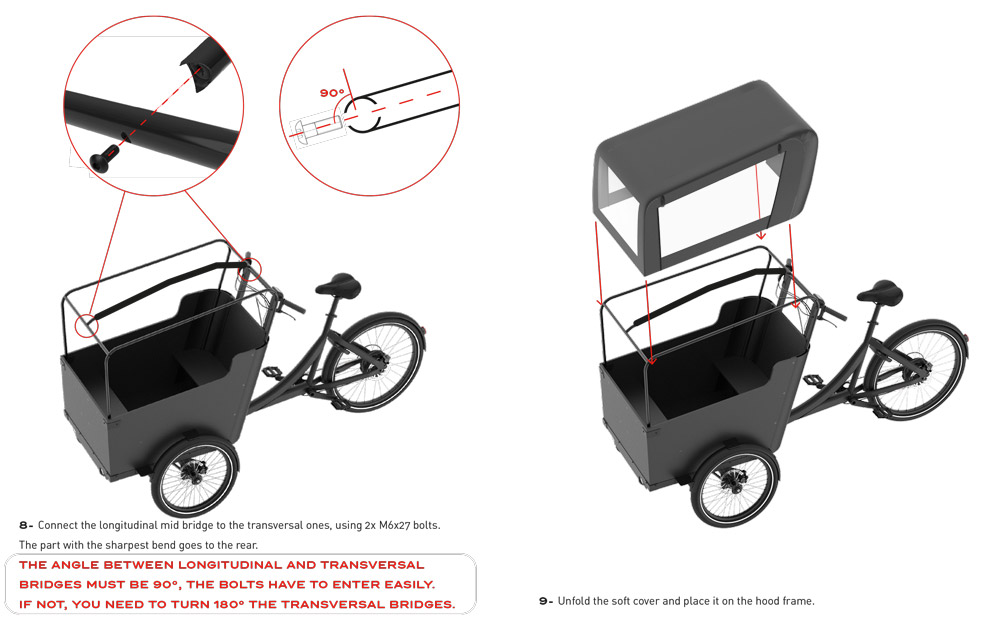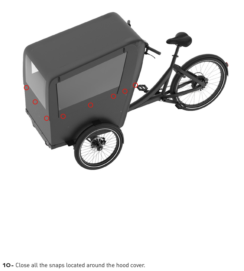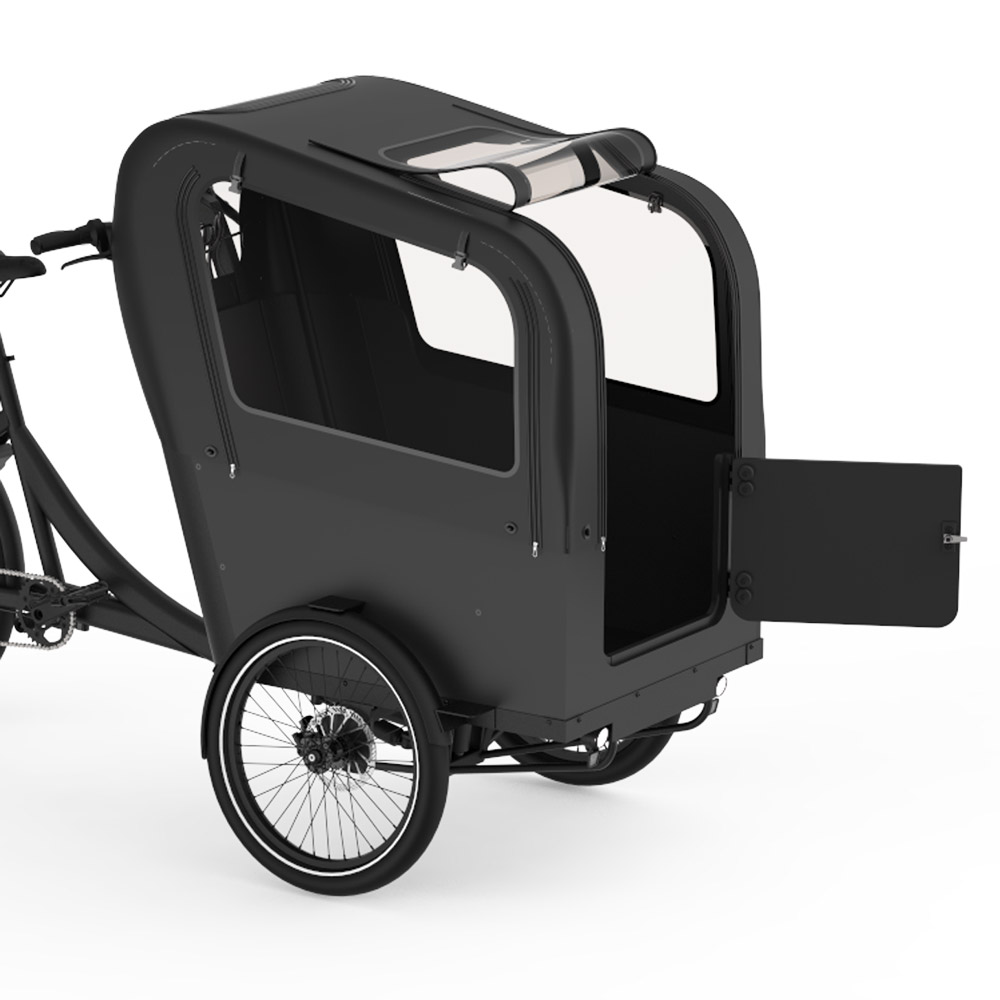 La capota tiene una ventana trasera para que puedas vigilar a tus pasajeros, quienes, al mismo tiempo, pueden disfrutar de las vistas por las ventanas laterales o frontales. Las grandes ventanas laterales son fáciles de abrir en los días calurosos, y la capota es fácil de quitar cuando no la necesitas.