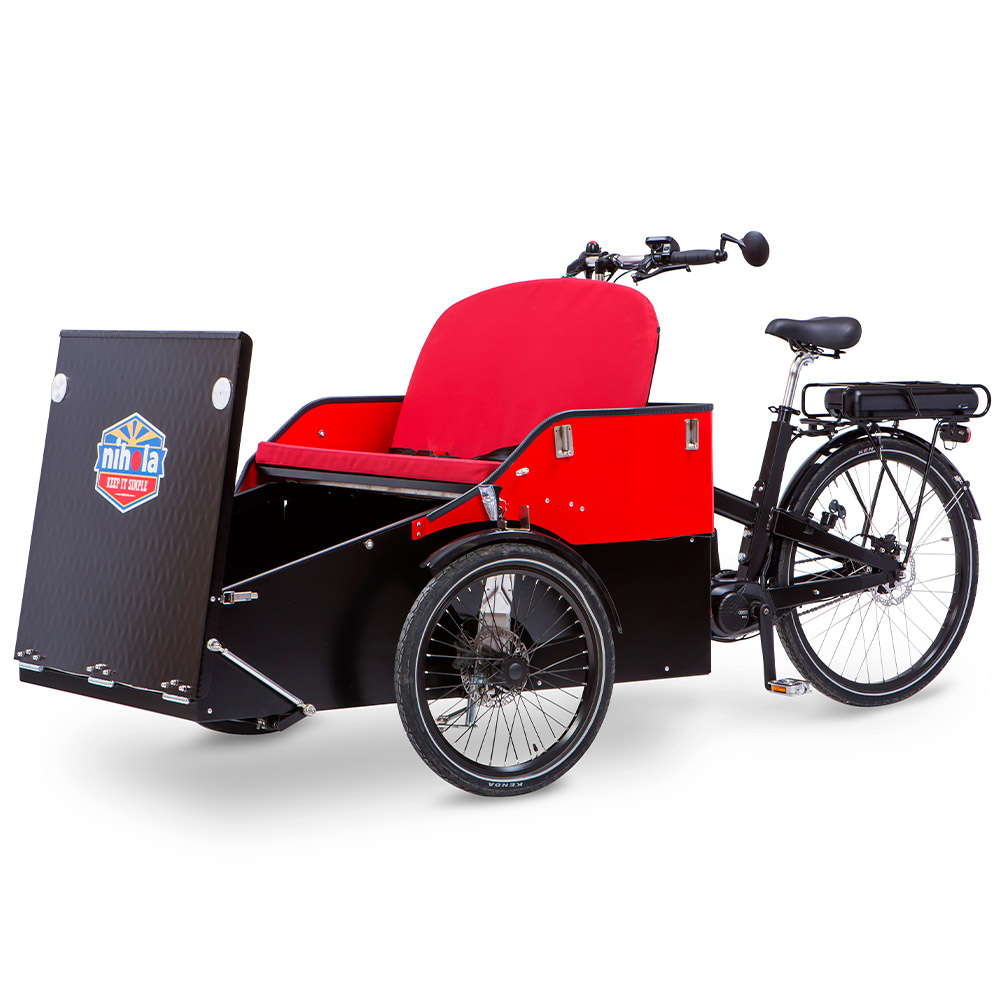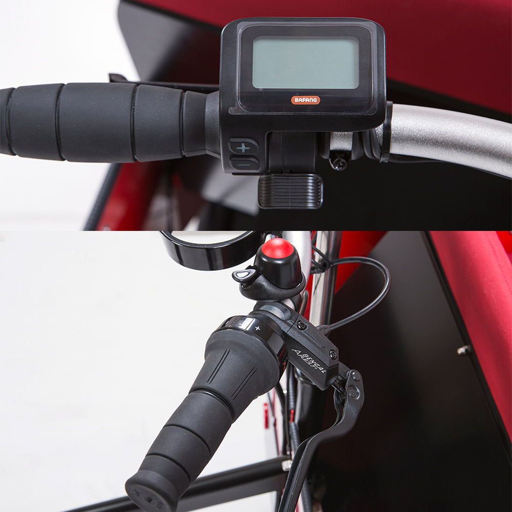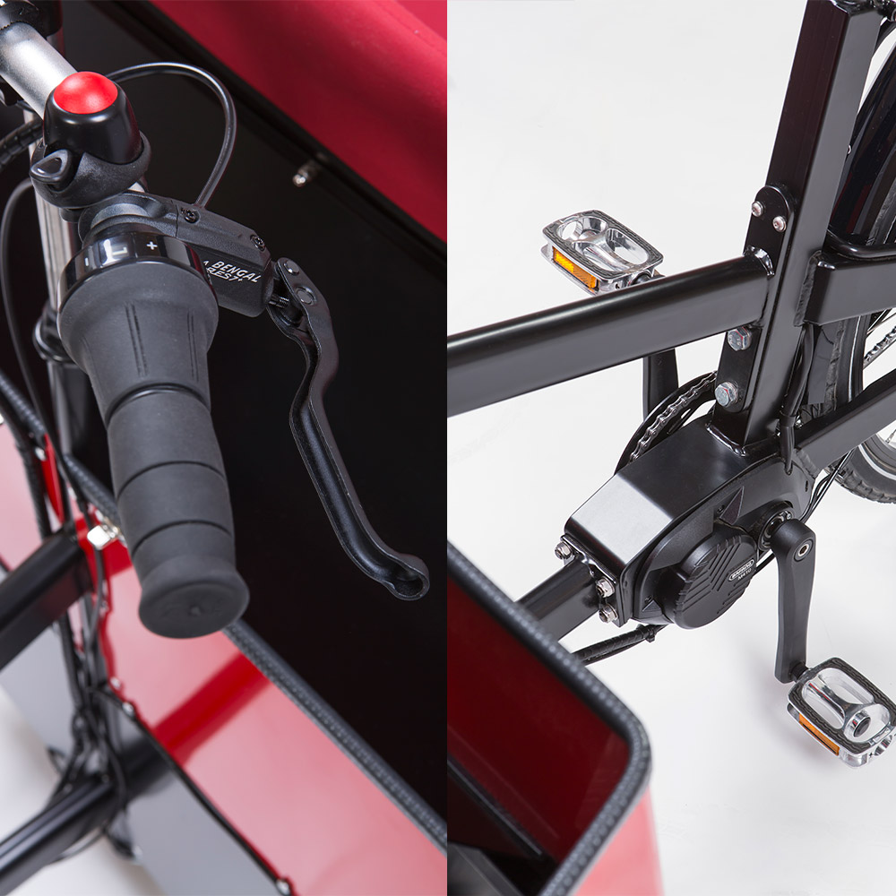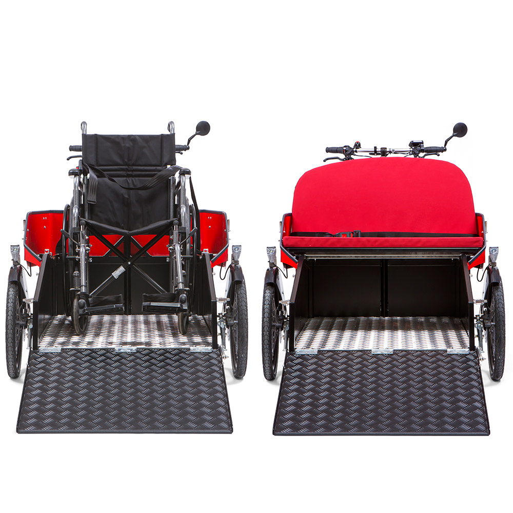 INCLUYE: Asiento delantero para pasajeros, capota, asiento blando de 50 mm, 2 luces delanteras (conectadas a la batería) y 1 luz de marcha atrás (conectado a la batería), freno de disco delantero y trasero (Tektro / Bengala). 1 cinturón para asiento / silla de ruedas,