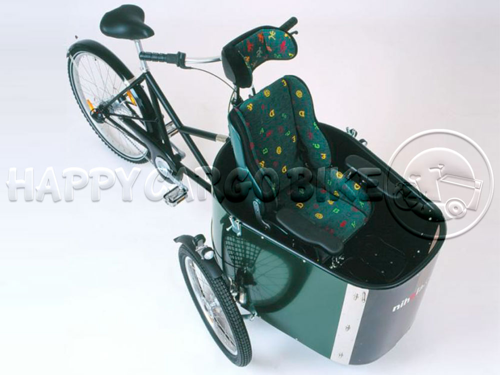 La bicicleta de carga nihola Rehab, HMI.nr. 29207, está especialmente desarrollado para asientos PANDA de R82, así como otros asientos especiales. Los asientos se pueden quitar fácilmente.