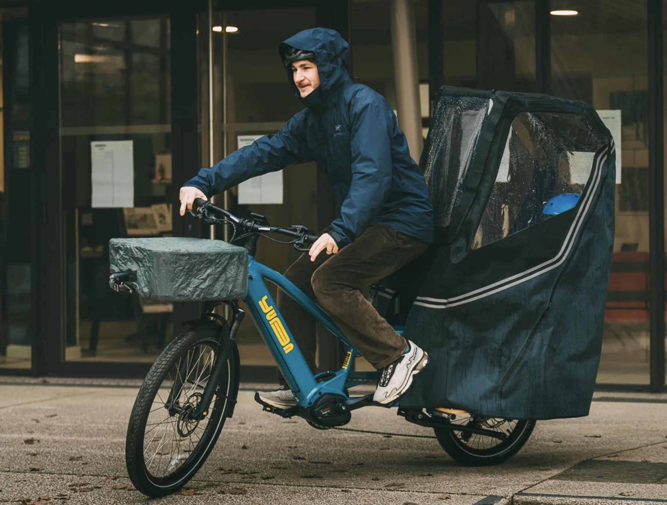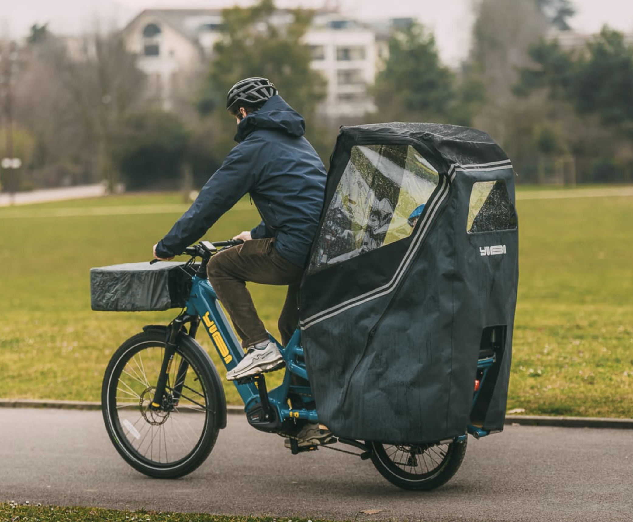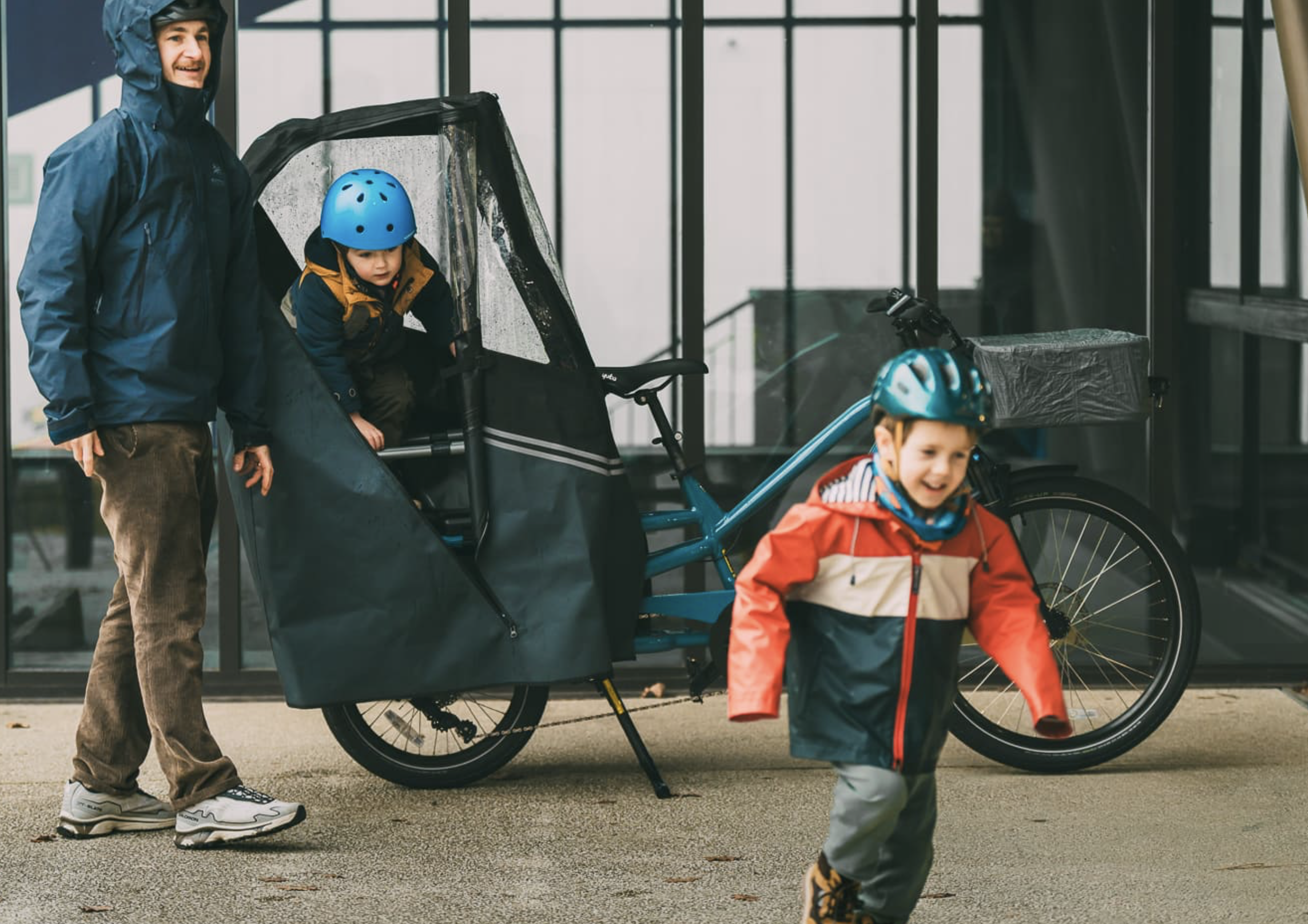 El toldo de lluvia Pop Shelter ofrece protección completa contra la intemperie para bicicletas de cola larga. Una evolución del Eco Pop Top, es más largo y ahora protege de la cabeza a los pies. Fabricado con materiales de calidad, protege a los pasajeros de la lluvia, el viento, la nieve y el sol. A diferencia del Eco Pop Top, se fija directamente a los portabicicletas Yuba, sin necesidad de Monkey Bars. También incorpora flujo de aire ajustable para una comodidad óptima, así como tiras reflectantes para una mayor visibilidad lateral y una mejor seguridad.