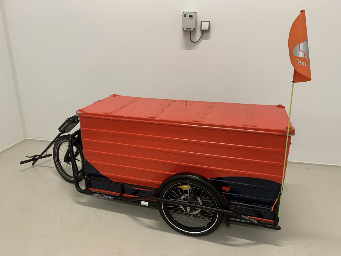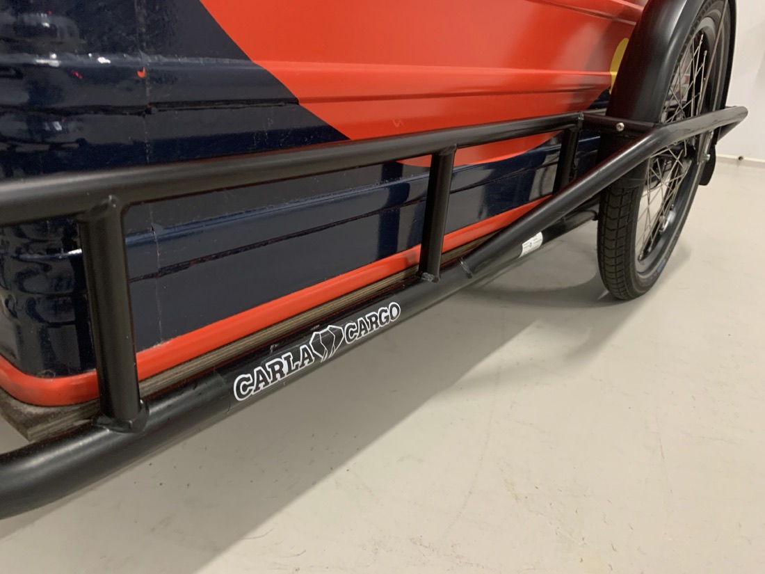 Remolque Carla Cargo de segunda mano reacondicionado del año 2022 con gran caja de aluminio con capacidad de carga de 800 litros y capacidad de carga máxima de nada menos que 200 kg. La caja se puede cerrar con llave, incluida la llave.