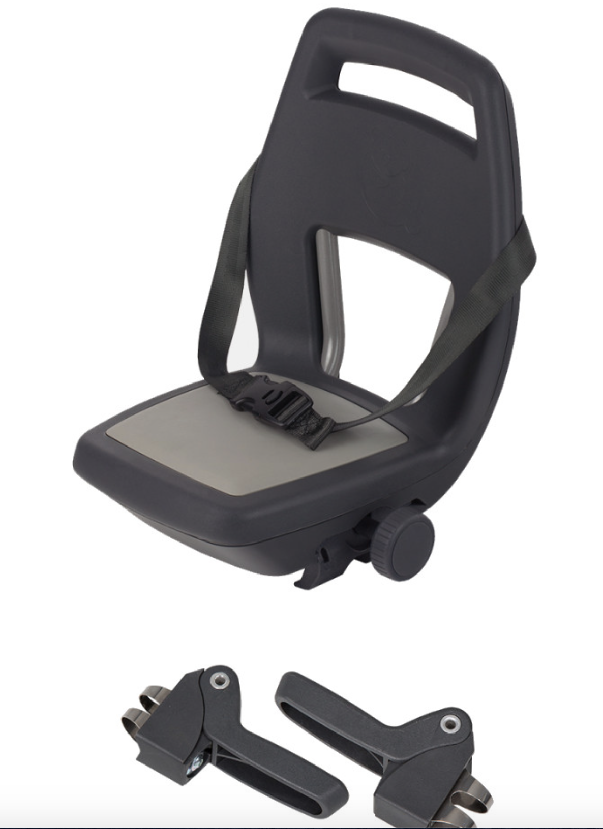 Este asiento para niños está diseñado para llevar «niños grandes» (hasta 35 kg) en viajes locales; su principal ventaja es su ligereza y su facilidad de fijación a un portaequipajes (ancho de 12 a 18 cm): efectivamente, la instalación se realiza sin herramientas (es mediante un pomo que el apriete se hace en el portaequipajes).