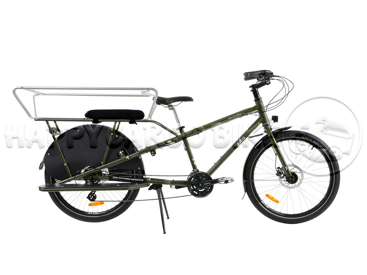El Mundo LUX es un clásico, el original invicto y el favorito de nuestros clientes. En términos de mecánica, carga y espacio para sentarse, se adapta a la necesidad de una familia de cuatro personas. Hemos estado fabricando bicicletas de carga durante casi una década (¡antes de que los hipsters fueran realmente una cosa!). Así que hemos tenido algo de práctica perfeccionando nuestro oficio. El Mundo LUX lo refleja. Consiéntanos y escúchanos sobre algunas de las nuevas características de las que estamos más orgullosos: el cuadro y la horquilla son de acero cromado, lo que mantiene la bicicleta sólida como siempre pero reduce cinco libras del peso final; tubo de dirección reforzado de 1.5 pulgadas, neumáticos Schwalbe Big Ben y llantas WTB agregan confianza al viaje; pintura dorada metálica que se ve muy bien y destaca para los conductores; y frenos hidráulicos para permitirle detenerse en un centavo, sin importar cuán cargado pueda estar.